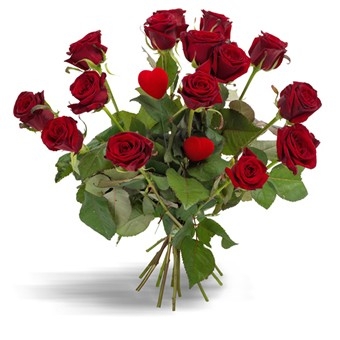 Zeg “Ik hou van jou” met dit romantische boeket van rode rozen, liefdevol aangevuld met zachte hartdecoraties.